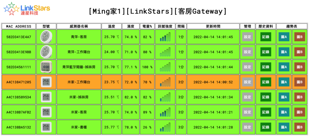 2.溫濕度資料上傳間隔時間可設定(1 、 3 、 5 、 10、15 、 30分鐘).