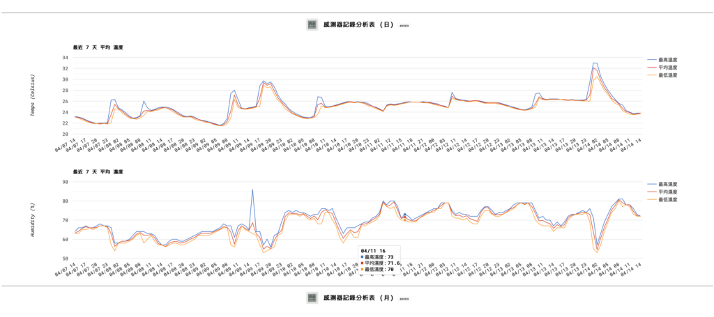 3.支援感測器資料上傳AWS雲端,一般版本可紀錄最近30天資料.