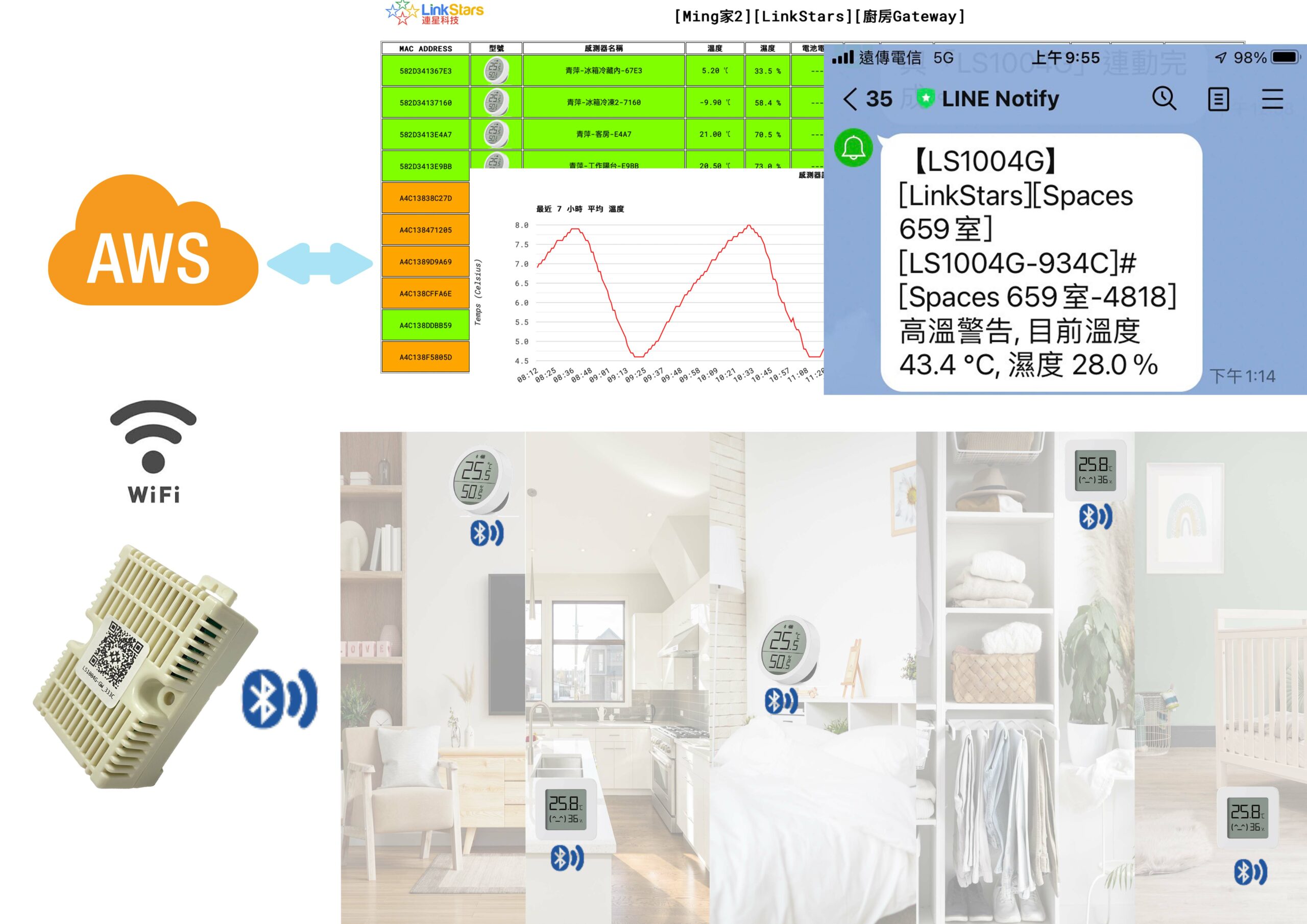 *LS1004S-02 預設1分鐘上傳間隔,電池壽命大於6個月.